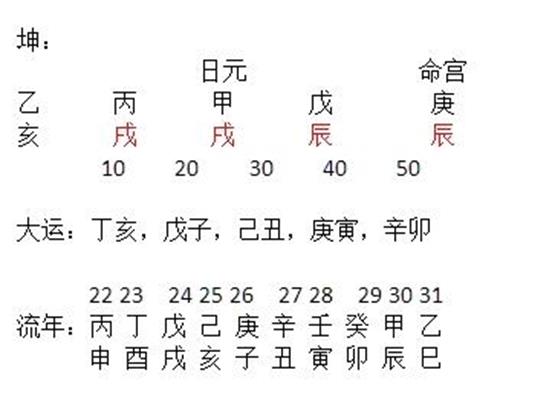此例是一对曾经的夫妻,男者22岁丁酉流年临天喜合命局辰时,女者满局红鸾天喜(辰戌)23岁合流年丁酉,于丁酉年奉子成婚,惜乎于戊戌流年女方弃女离异。