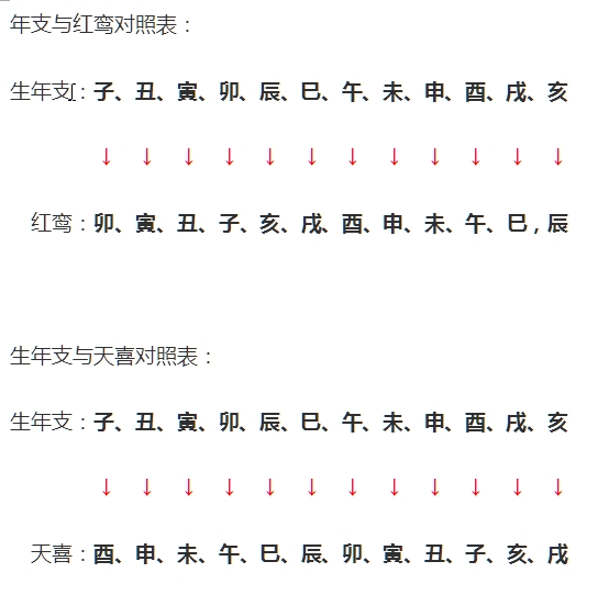 为明甶起见,兹将红鸾天喜列表以示: