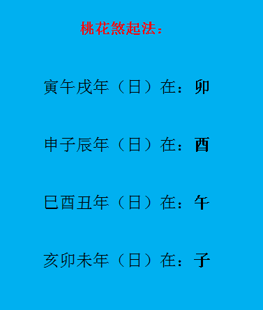 四柱八字“桃花煞”的起法: